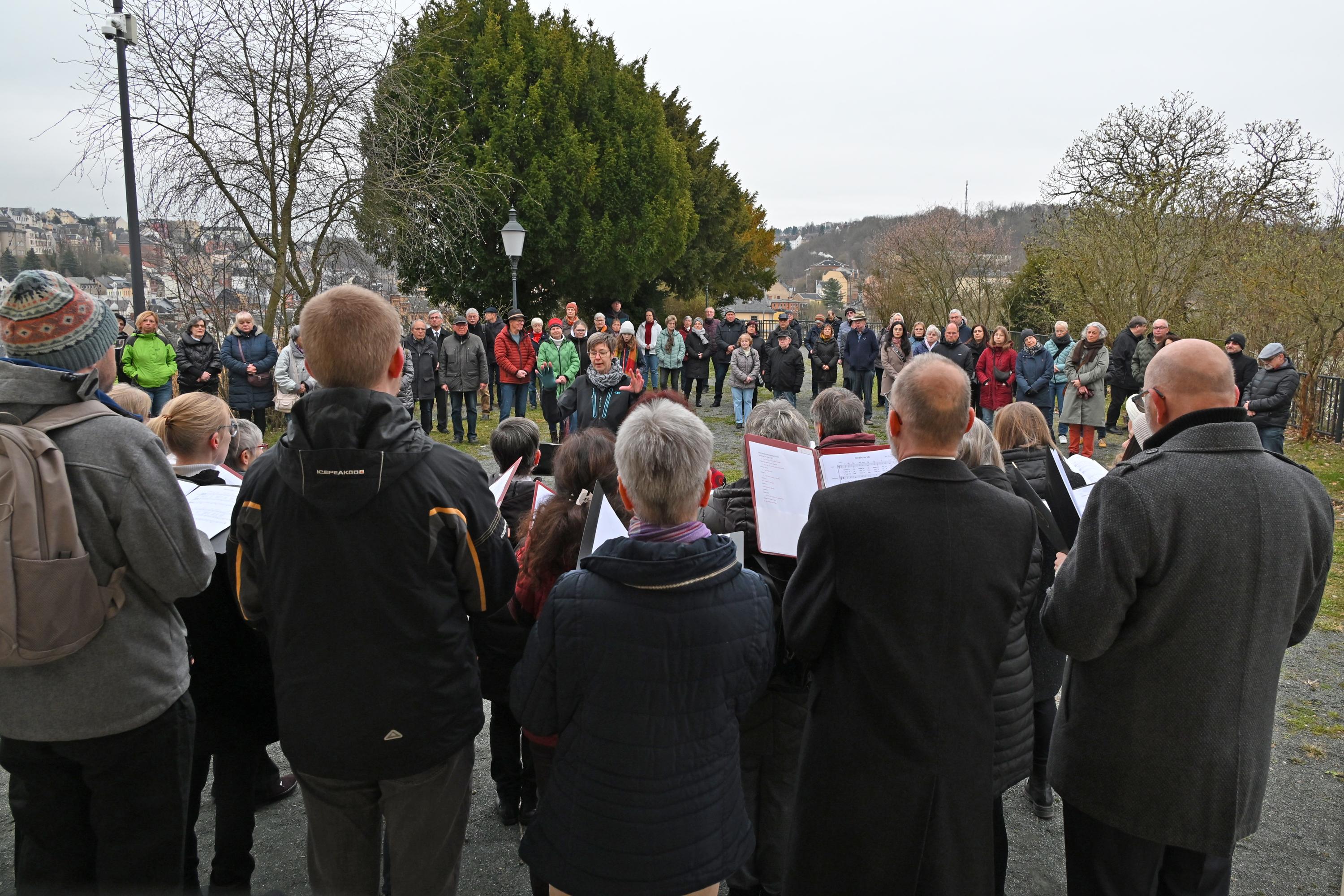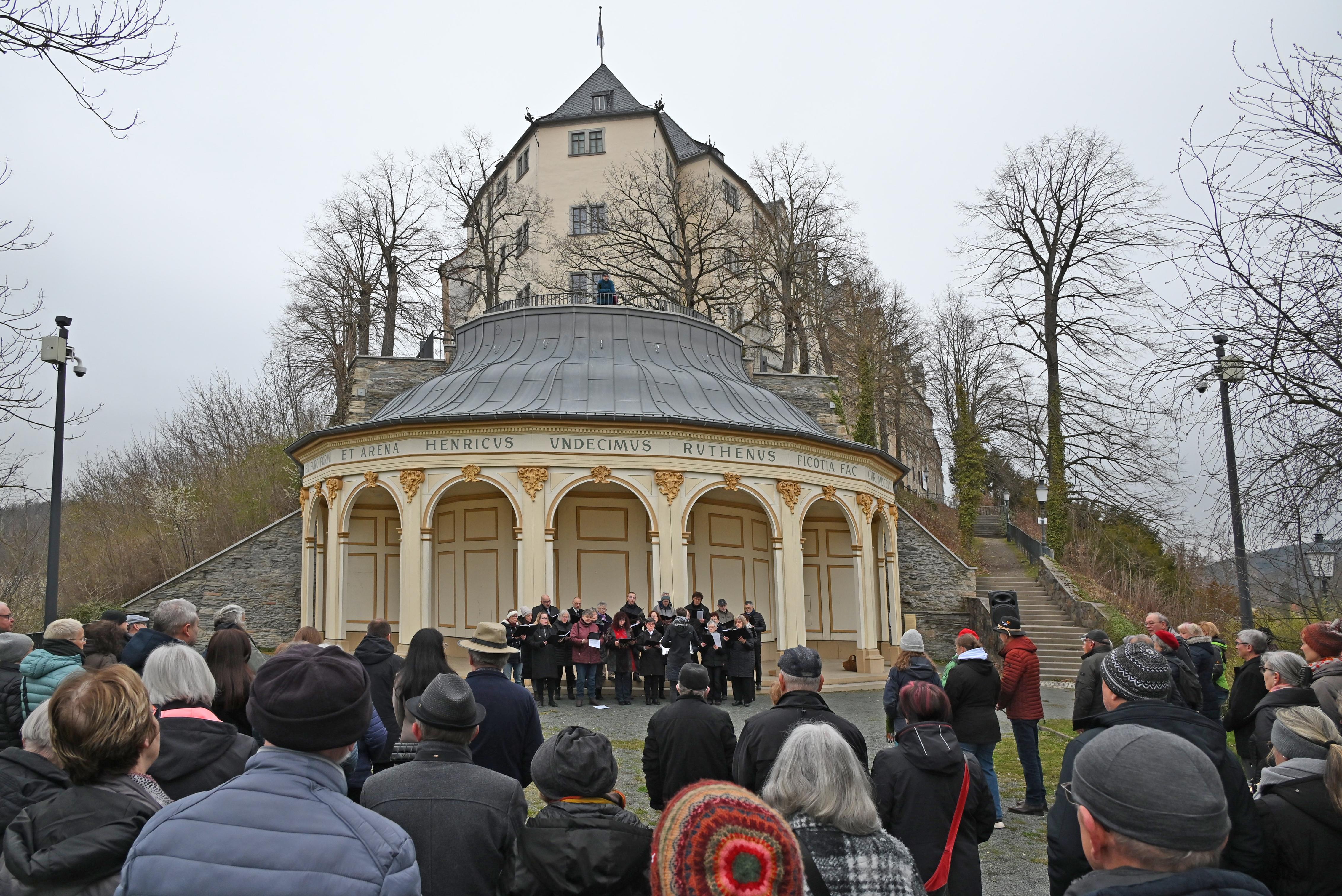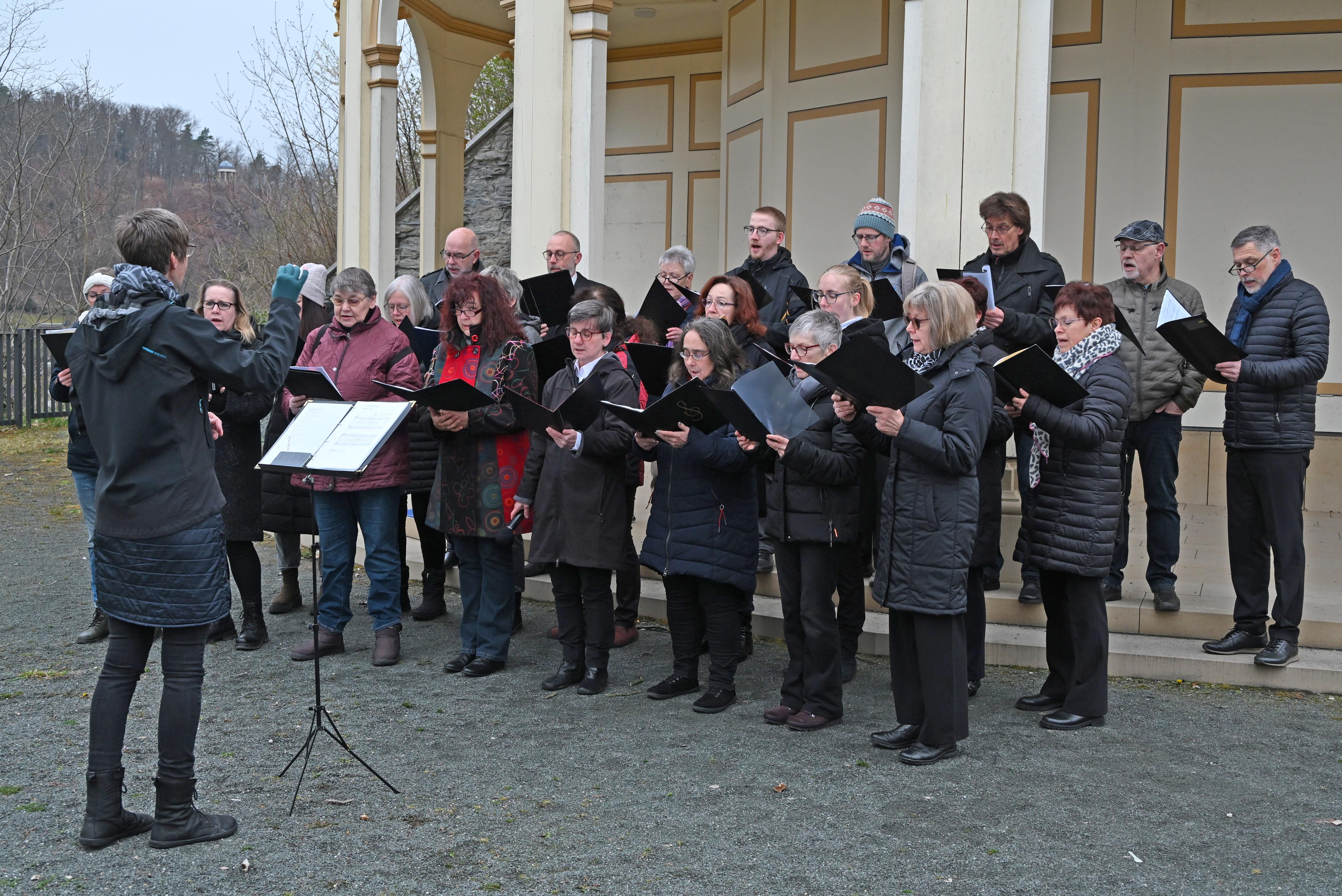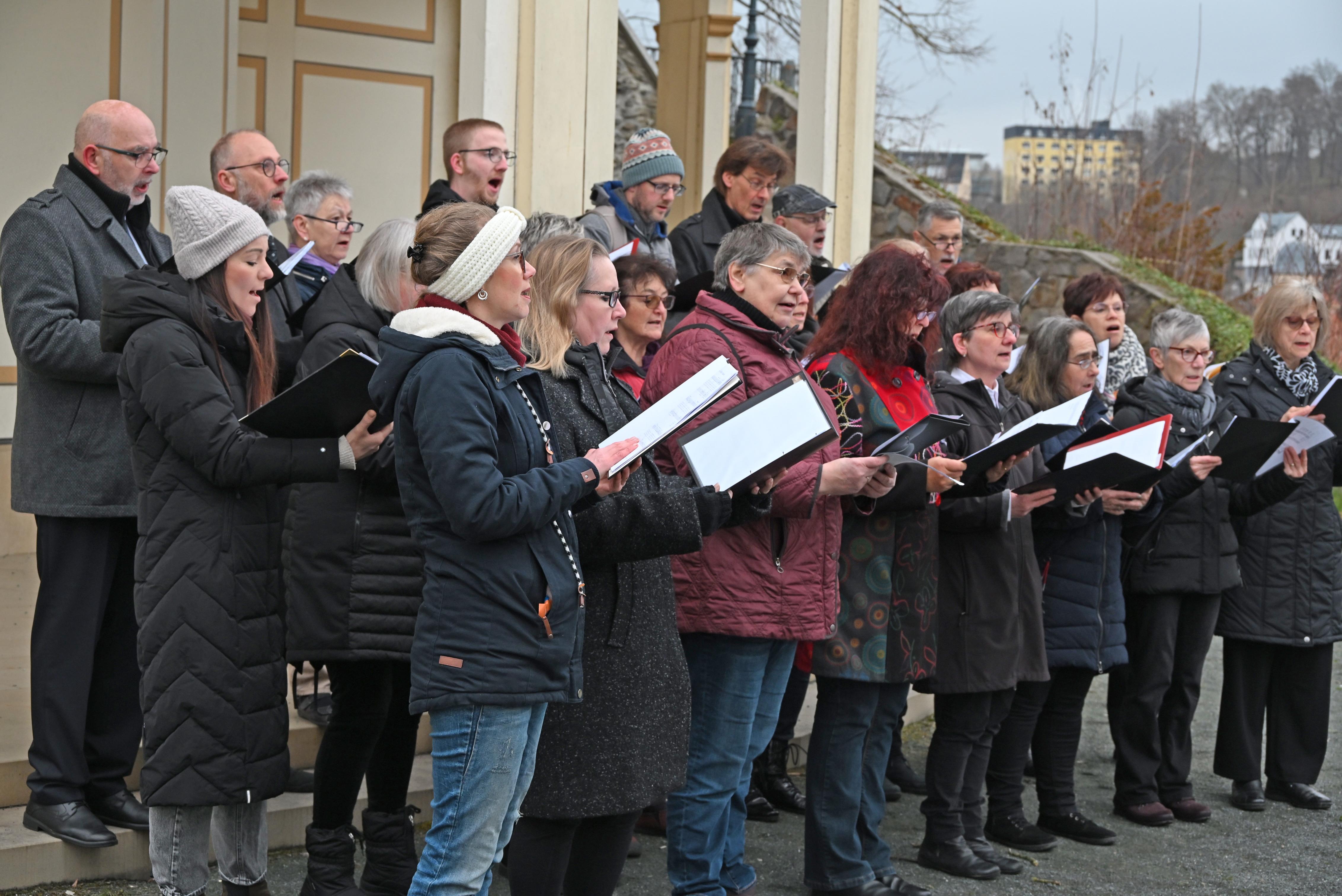 Am Karfreitag fand im Schanzengarten des Oberen Schlosses Greiz wieder das traditionelle Morgensingen eines ökumenischen Projektchores statt. Über 25 Sängerinnen und Sänger aus sieben verschiedenen Kirchgemeinden gestalteten unter der Leitung von Doreen Steudel ein bewegendes Programm mit christlichen Liedern, Lesungen und Gebeten, die an das Leiden und die Auferstehung Jesu erinnerten. Begrüßt wurden die Besucher von Elke Heckmann, Bischöfin der Apostolischen Gemeinschaft. Der Verein Ökumene e.V. mit dem Vorsitzendem Uwe Schneider, Neuapostolische Kirche, führt damit eine über 160 Jahre alte Tradition fort, die 1863 vom Greizer Kantor Wilhelm Urban begründet, nach dem Zweiten Weltkrieg unterbrochen und nach der politischen Wende im Jahr 1990 von Winfried Arenhövel, damaliger Dirigent in der Katholischen Kirche, wiederbelebt wurde.  Seit der coronabedingten Unterbrechung  hat diese Tradition ein ökumenischer Projektchor übernommen. Dank des Engagements der Sängerinnen, Sänger und Beteiligten bleibt dieses besondere musikalische und geistliche Ereignis ein fester Bestandteil des Greizer Karfreitagsmorgens.  Neben diesem Projektchor singen Christen der Stadt Greiz  Jahr für Jahr gemeinsam in weiteren projektbezogenen Ensembles, insbesondere in der Vorweihnachtszeit, zusammen.